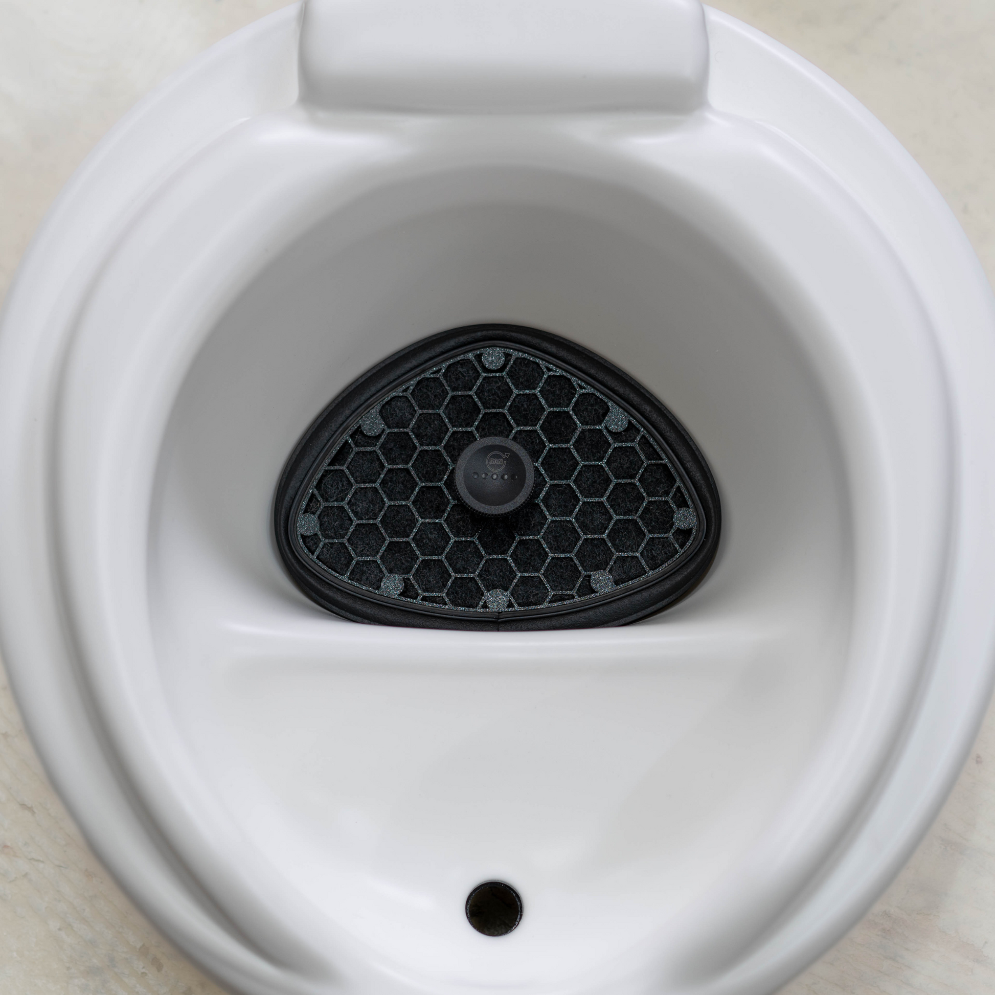 • Der Füllstand des Urinkanisters kann durch den leicht durchsichtigen Behälter von aussen durch die Serviceklappe abgelesen werden, die smarte Verschlusskappe verhindert ein Überlaufen